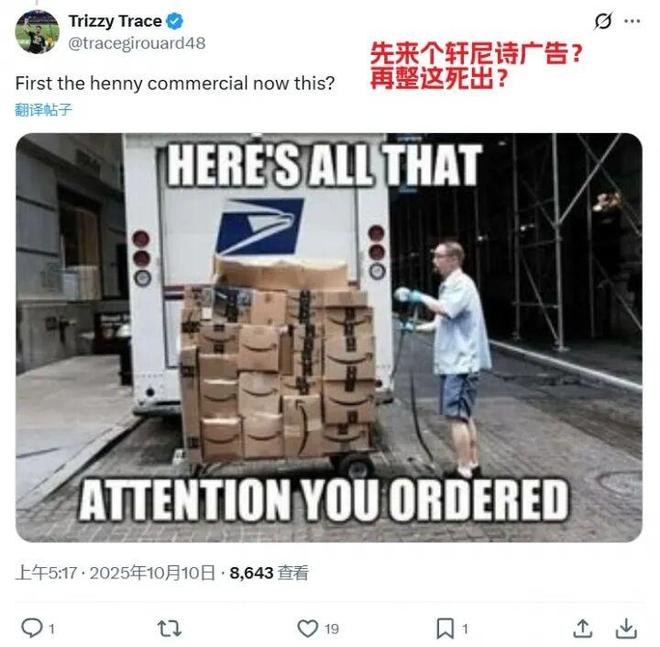 网友@狗子:轩尼诗喝多了 痛风了?